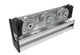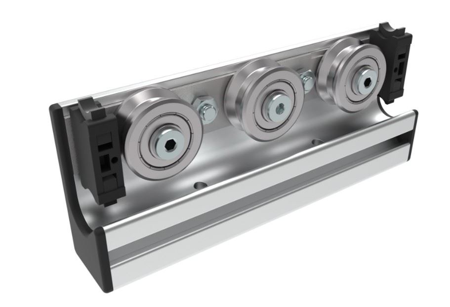zur linearen Führung von Lasten, kugelgelagerte Stahl-Rolle läuft auf Welle Ø 14 mm