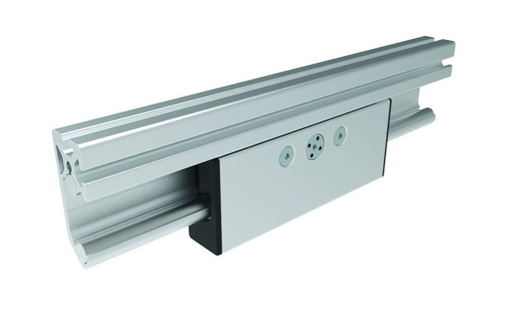 zur linearen Führung von Lasten, kugelgelagerte Stahl-Rolle läuft auf Welle Ø 14 mm